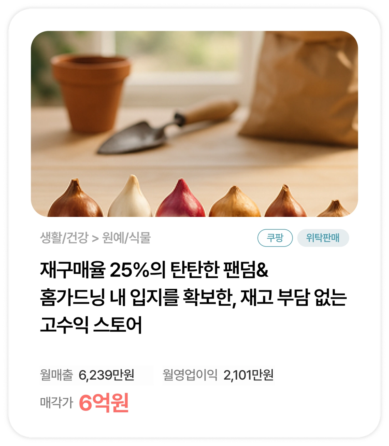 재구매율 25%의 탄탄한 팬덤& 홈가드닝 내 입지를 확보한, 재고 부담 없는 고수익 스토어