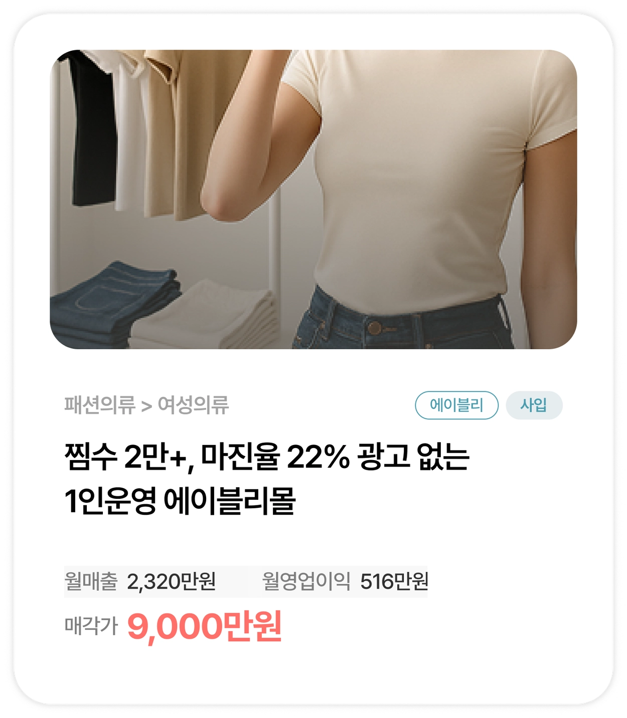 찜수 2만+, 마진율 22% 광고 없는 1인운영 에이블리몰
