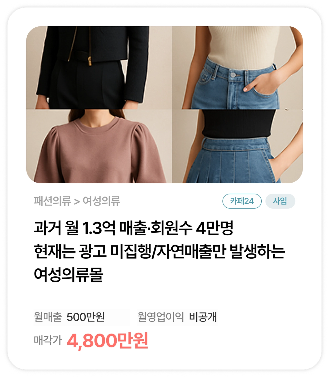 과거 월 1.3억 매출, 회원수 4만명 현재 광고 미집행/자연매출만 발생하는 여성의류몰