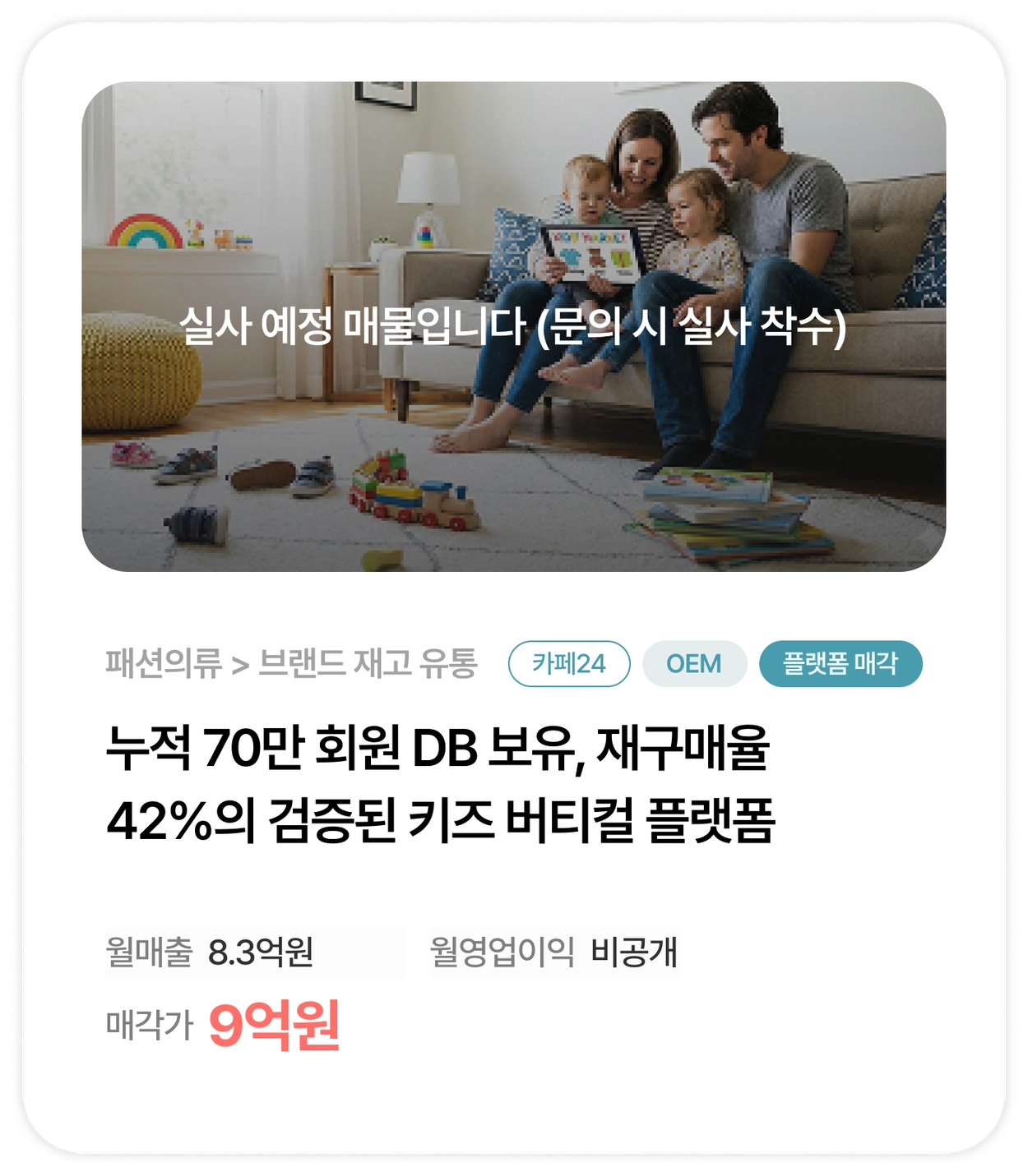 [플랫폼 매각] 누적 70만 회원 DB 보유, 재구매율 42%의 검증된 키즈 버티컬 플랫폼