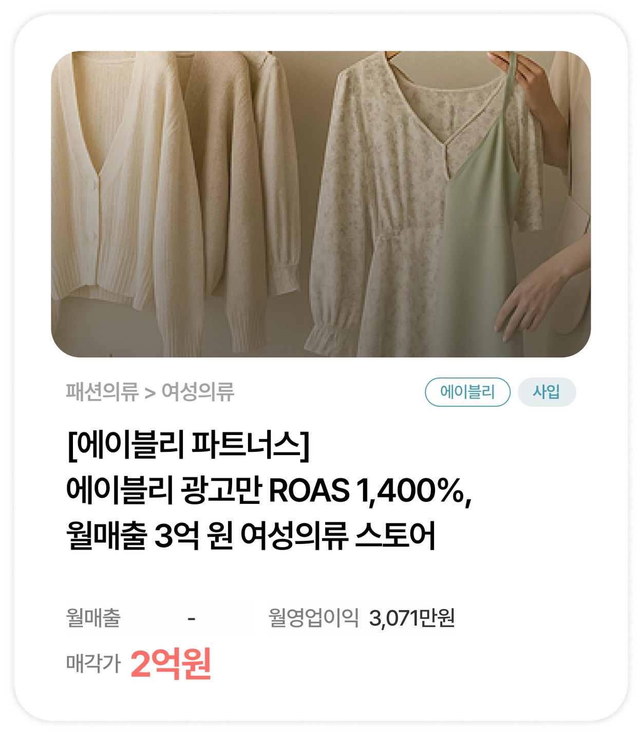 [에이블리 파트너스] 에이블리 광고만 ROAS 1,400%· 월매출 3억 원 여성의류 스토어