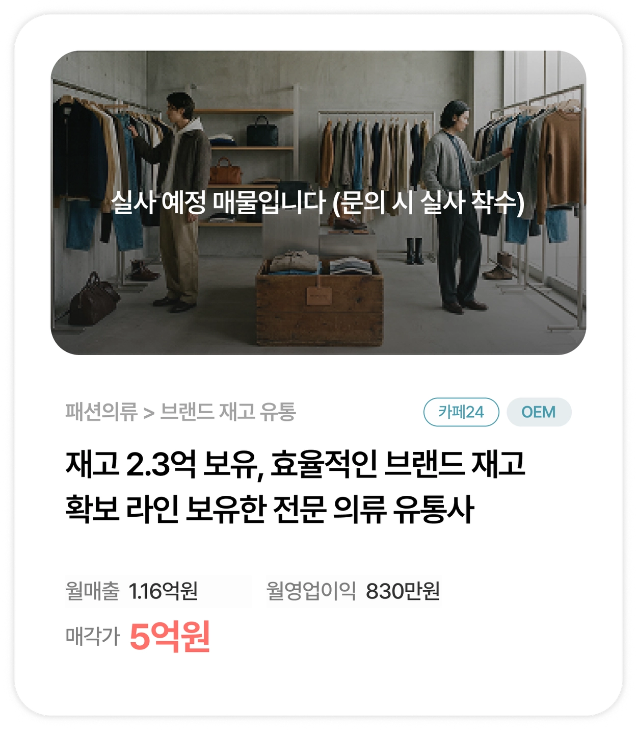 재고 2.3억 보유, 효율적인 브랜드 재고 확보 라인 보유한 전문 의류 유통사