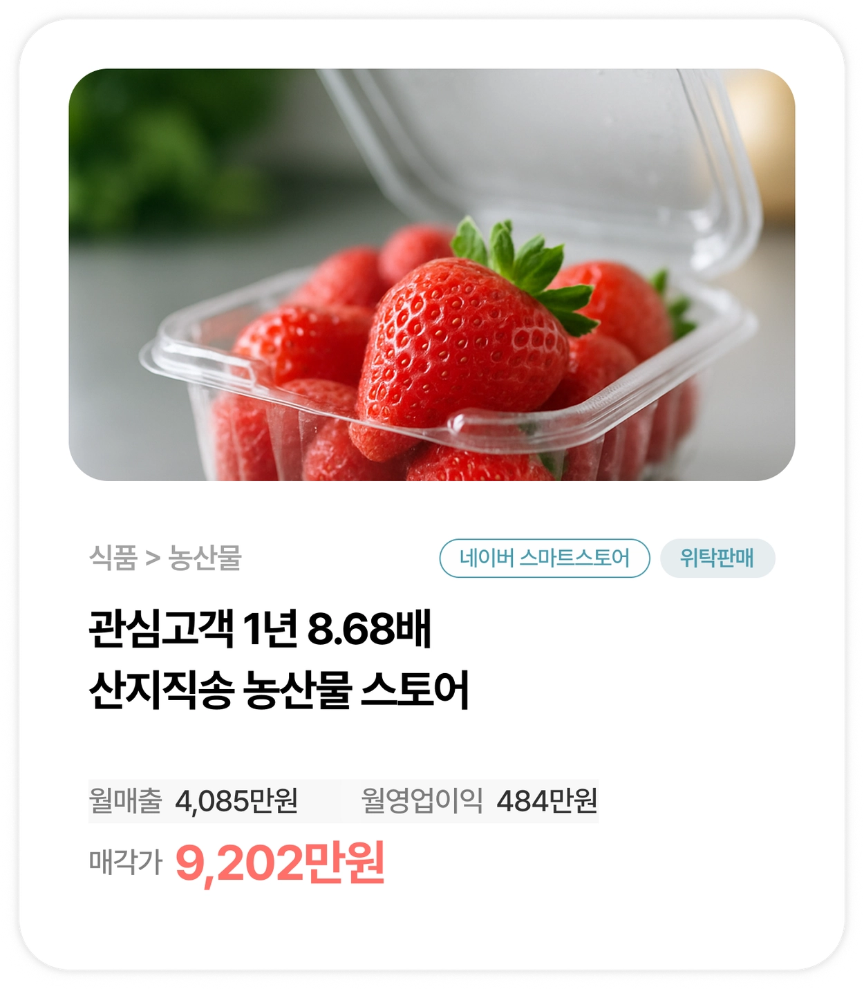관심고객 1년 8.68배 산지직송 농산물 스토어