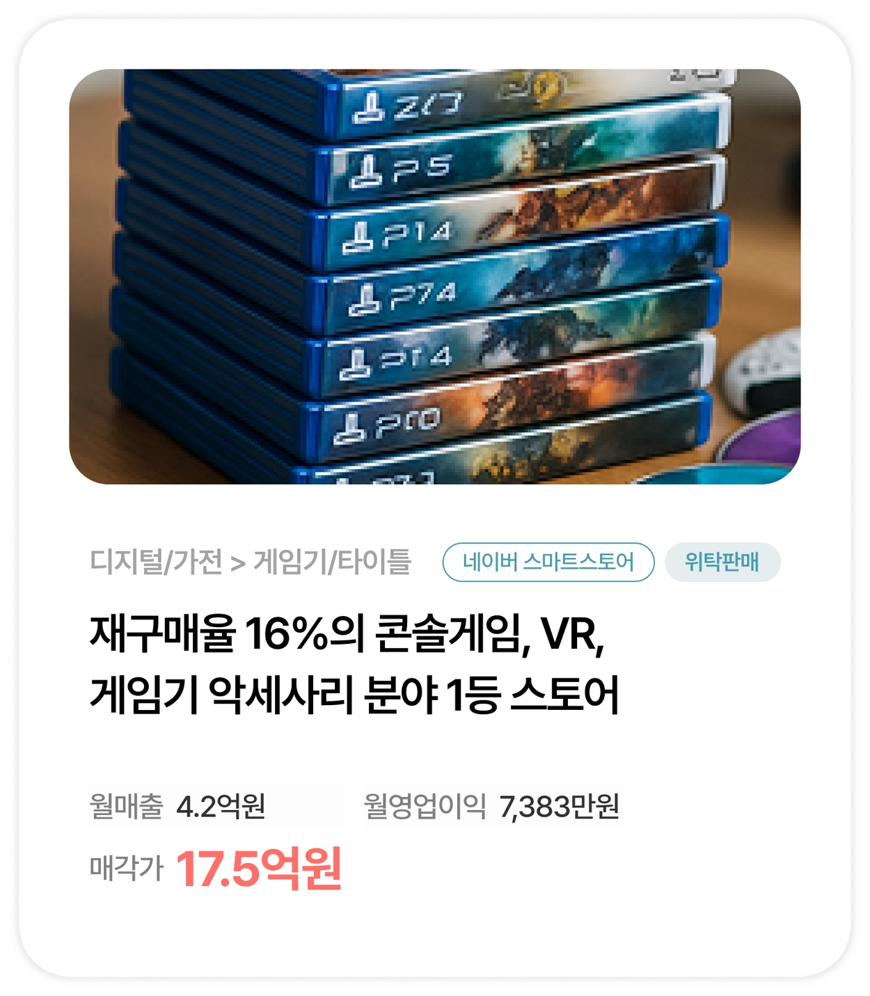 재구매율 16%의 콘솔게임, VR, 게임기기 악세사리 분야 1등 스토어