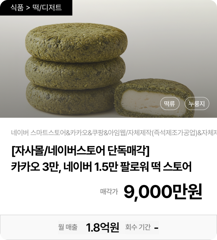 [자사몰/네이버스토어 단독매각] 카카오 3만, 네이버 1.5만 팔로워 떡 스토어