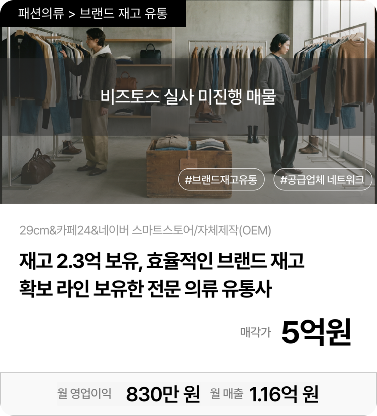재고 2.3억 보유, 효율적인 브랜드 재고 확보 라인 보유한 전문 의류 유통사
