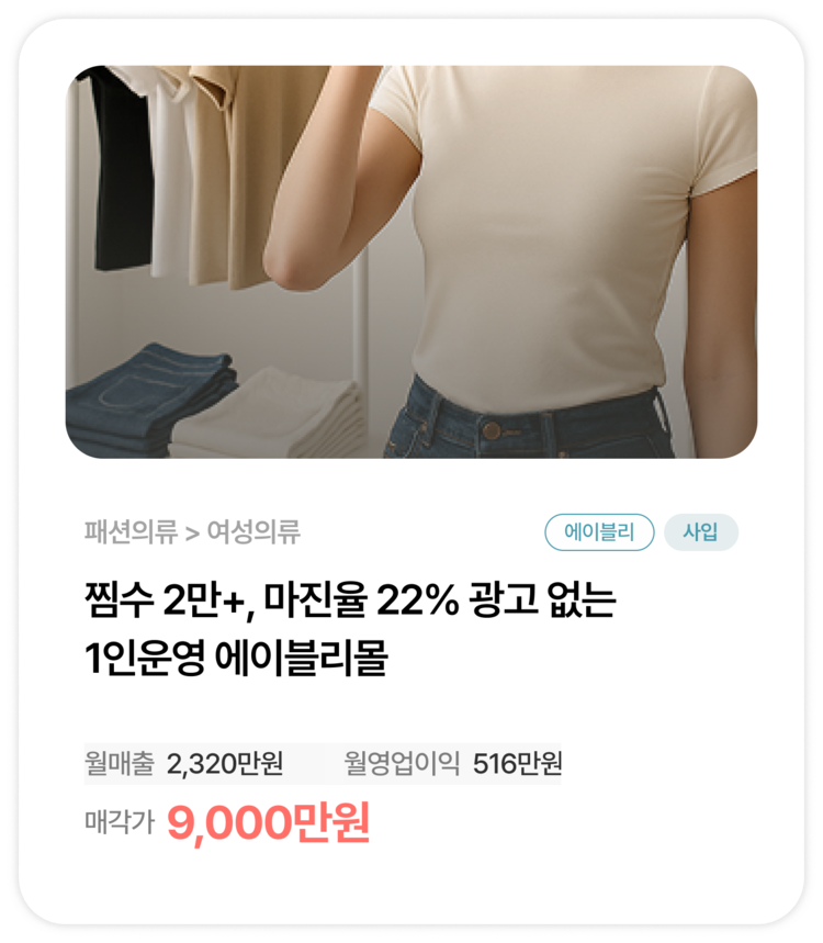 찜수 2만+, 마진율 22% 광고 없는 1인운영 에이블리몰