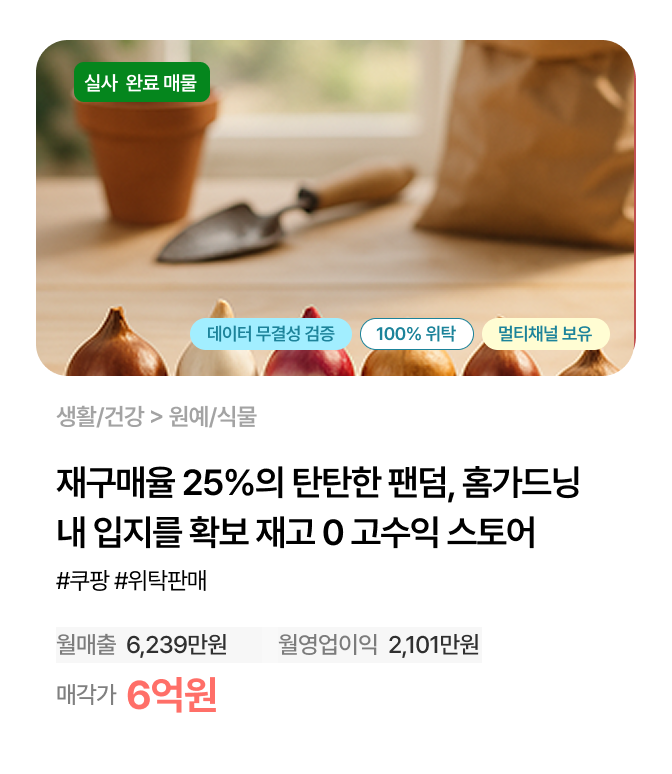 재구매율 25%의 탄탄한 팬덤& 홈가드닝 내 입지를 확보한, 재고 부담 없는 고수익 스토어